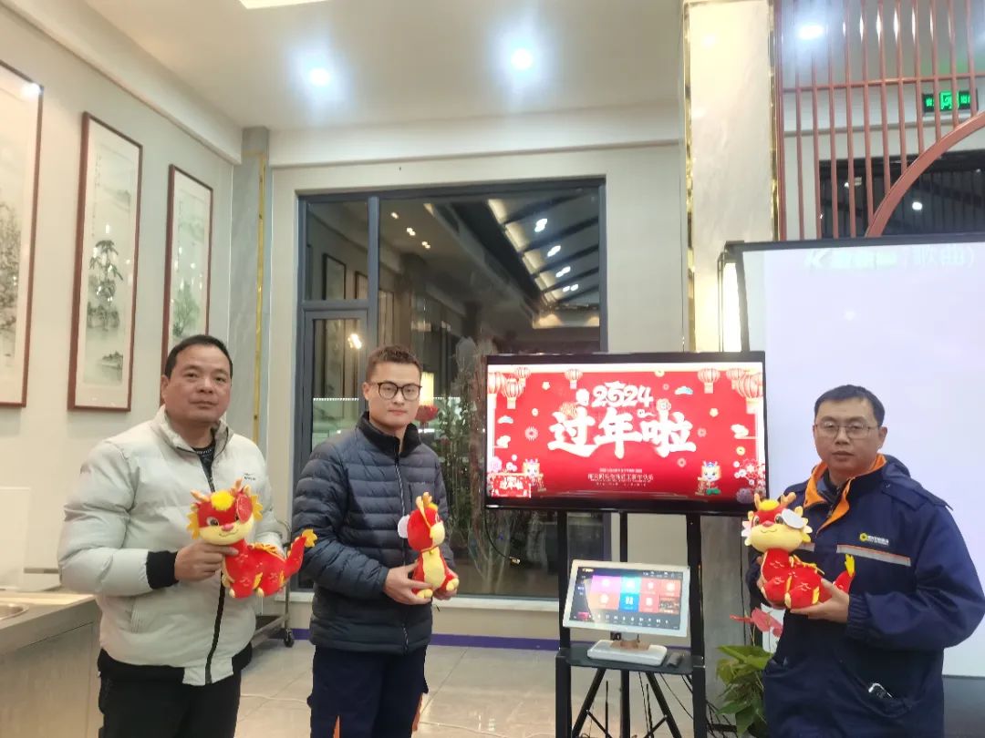 公司特意為留守員工準(zhǔn)備了龍年吉祥物,在一陣陣歡快的歌聲中,年夜飯達(dá)到高潮。大家紛紛表示,這頓年夜飯,在麗天碼頭這個“家”里吃,很幸福!